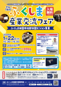 弊社は、2026年のスタートを飾る初の展示会として、パルセいいざかで開催される『令和7年度 ふくしま産業交流フェア』にブース出展いたします。本フェアは、圏域内での新たな取引拡大やビジネス創出、大学や支援機関との交流・連携を目的として開催されます。